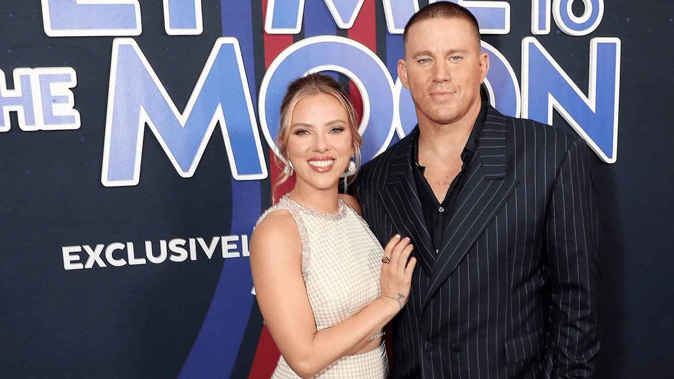 Американська акторка Скарлетт Йоганссон запрем'єрила фільм "Візьми мене на Місяць" у Нью-Йорку. На червоному хіднику вона з'явилась разом з чоловіком Коліном Джоста та напарником по проєкту актором Ченнінгом Татумом.